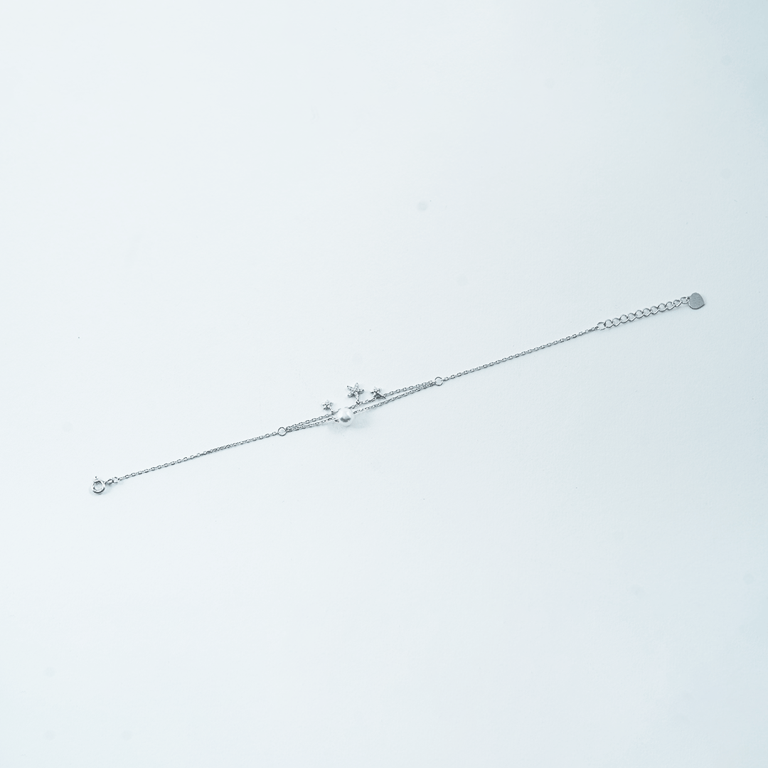 Silver Pearl & Star Charm Bracelet
